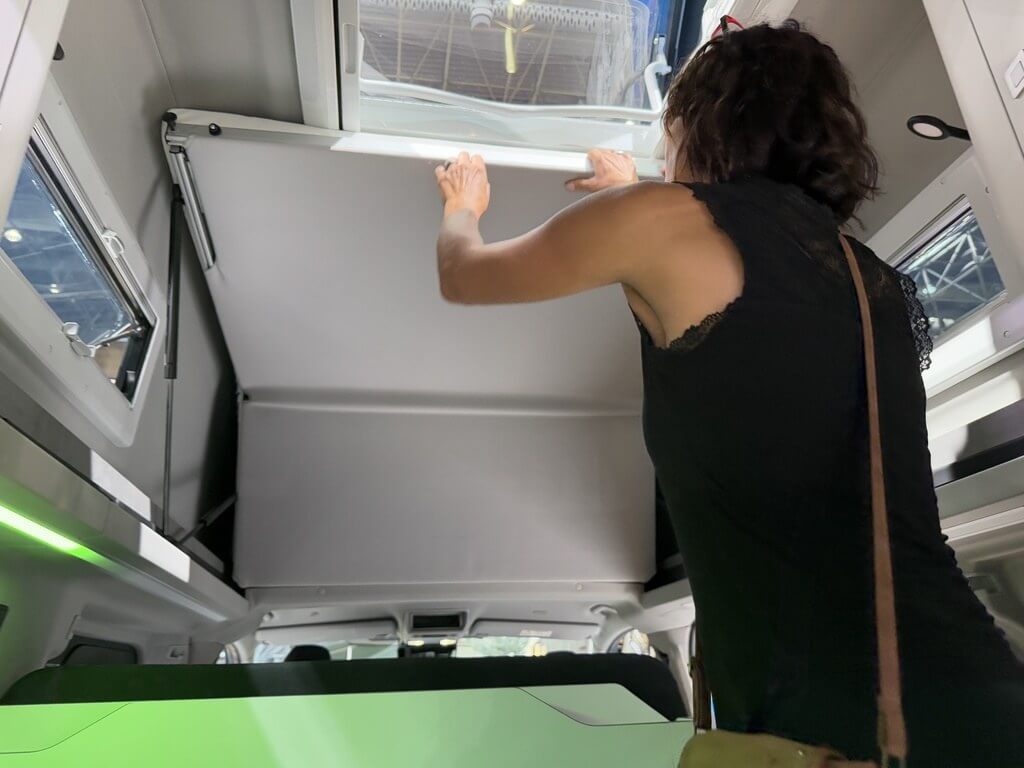 Insgesamt stehen vier Schlafplätze zur Verfügung zwei im Hochdach und zwei auf der umklappbaren Sitzbank
