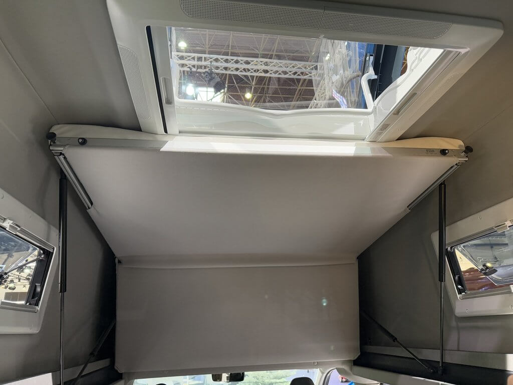 Alle Fenster sind serienmäßig mit Insektenschutz und Verdunkelung ausgestattet. Die integrierten Kassettenrollos lassen sich schnell bedienen und ermöglichen ein zügiges Abdunkeln – praktisch beim Mittagsschlaf, auf Stellplätzen oder in der Stadt. Das Hochdach verfügt über seitliche Fenster und eine Dachluke, über die verbrauchte Luft nach oben abziehen kann und frische Luft nachströmt. Im Heckbereich sind zusätzlich Öffnungsfenster integriert, die den Kochbereich mit Frischluft versorgen. So bleibt das Raumklima auch bei hohen Außentemperaturen angenehm, ohne dass Sie auf Privatsphäre verzichten müssen.