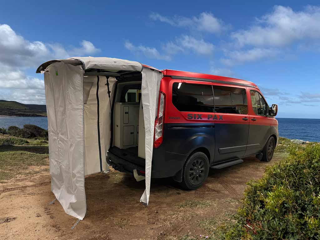 Ob Spontan am Strand oder am Campingplatz – mit dem passenden Heckzelt wird dein Ford Nugget zum echten Raumwunder.