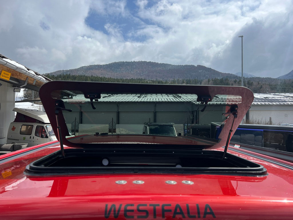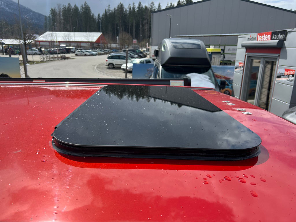 Der clevere Umbau ermöglicht eine gezielte Entlüftung beim Kochen – sogar während der Fahrt, wenn das Fenster leicht gekippt geöffnet ist, bleiben Ihre Kinder / Mitfahrer / Hund während der heißen Jahreszeit von der heiße Innen-Luft verschont. Durch das Glashebefenster wird die aufgestaute heiße Luft abgesaugt und die Klimaanlage kann angenehme kühle Luft nachschieben.